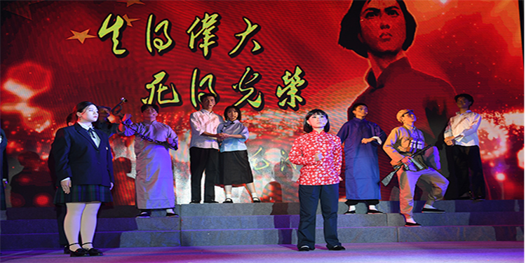 我校師生生動(dòng)地演繹了劉胡蘭、夏明翰、董存瑞、何敬平等革命烈士的英雄形象,帶領(lǐng)觀眾一起重溫那段驚心動(dòng)魄的歷史,追憶那段血雨腥風(fēng)的艱苦歲月,悼念我們的革命先烈,緬懷他們的豐功偉績,激發(fā)強(qiáng)烈的愛國熱情。各位“烈士”用鏗鏘有力的聲音詮釋共產(chǎn)黨人信仰的力量,表達(dá)對革命先烈最崇高的敬意。
