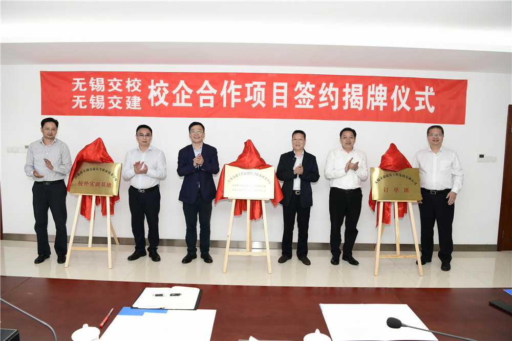 5月21日下午,學校與無錫交建集團舉行校企合作項目簽約、揭牌儀式。江蘇省交通運輸廳副廳長金凌,無錫市交通產(chǎn)業(yè)集團有限公司總裁王國新出席儀式并共同為“江蘇交通工程試驗檢測技術(shù)研究中心”揭牌。廳政治處副處級干部李進,學校黨委書記、校長李虎,無錫交建集團黨委書記、董事長許青凱,總經(jīng)理蔣豪分別為“無錫交通建設工程集團有限公司訂單班”“江蘇省無錫高等職業(yè)技術(shù)學校校外實訓基地”揭牌。
