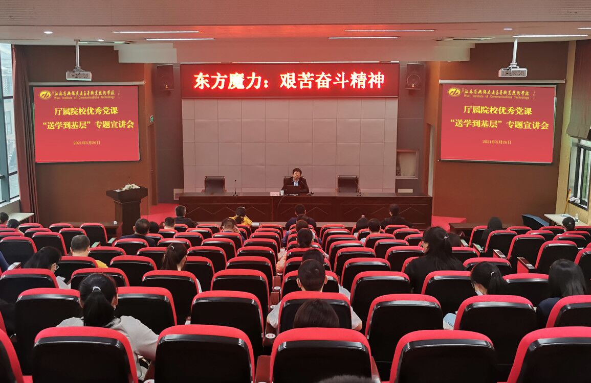 為扎實開展黨史學習教育,廳黨組發(fā)揮廳屬院校思政教師的作用,統(tǒng)籌安排了廳屬院校優(yōu)秀黨課“送學到基層”活動,強化交通基層黨組織建設,5月26日下午,江蘇省交通運輸廳廳屬院校思政教師優(yōu)秀黨課“送學到基層”《東方魔力:艱苦奮斗精神》專題宣講會在學術(shù)報告廳舉行,近70名黨員教師和學生黨員參加學習。