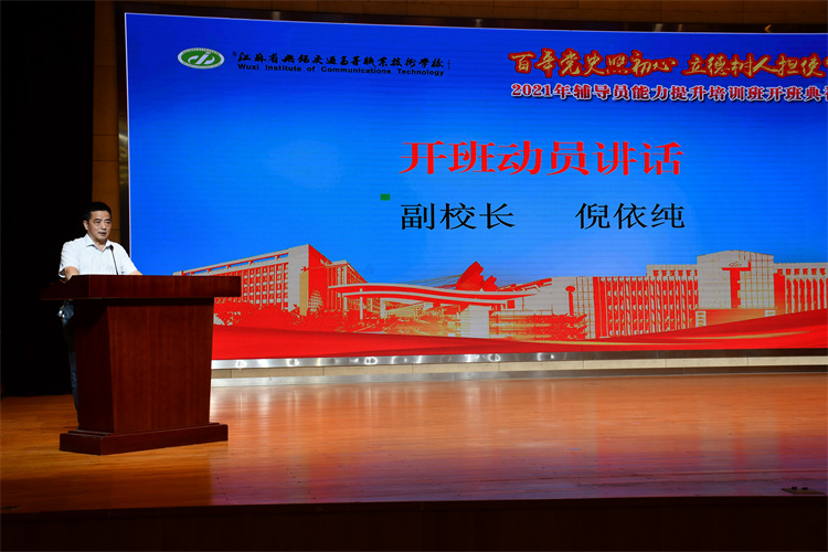 開班典禮上,倪依純副校長作開班動員講話,他指出輔導員隊伍是學生管理以及思政工作中一支不可替代的中堅力量,是最接近學生、最關心學生、最受學生信任的人。他強調輔導員要不忘立德樹人初心,把思想政治教育工作貫穿教育教學全過程,實現全程、全員和全方位育人的局面。倪校長要求全體輔導員要做事業(yè)的明白人,成為學生思想道德的培養(yǎng)者,要做工作的內行人,成為學生思想政治教育的研究者,要做學生的貼心人,成為學生學習生活的信任者。