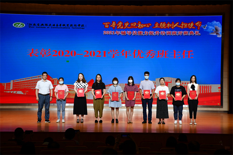 開班典禮期間,還聘任了2021級新生班輔導員,表彰了2020-2021學年優(yōu)秀班主任。新生班輔導員代表王赟老師發(fā)言中表示將做好本職工作,做到守土有責、守土盡責,為學校高質量發(fā)展貢獻力量。