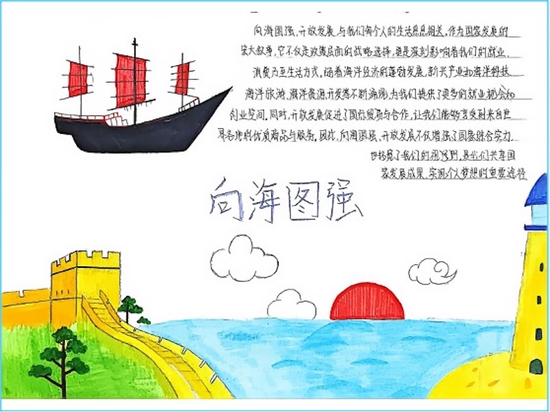 同學(xué)們踴躍參與,圍繞主題創(chuàng)作了豐富多樣的作品。有的通過攝影與文章,展現(xiàn)我國海洋經(jīng)濟的蓬勃發(fā)展;有的以手繪和文字,詮釋“向海圖強”與個人發(fā)展的緊密聯(lián)系;還有同學(xué)從海洋科技、資源開發(fā)等角度,強調(diào)海洋強國戰(zhàn)略的時代意義。多幅作品體現(xiàn)了青年一代以專業(yè)為槳、以青春為帆,投身國家海洋事業(yè)的堅定決心。