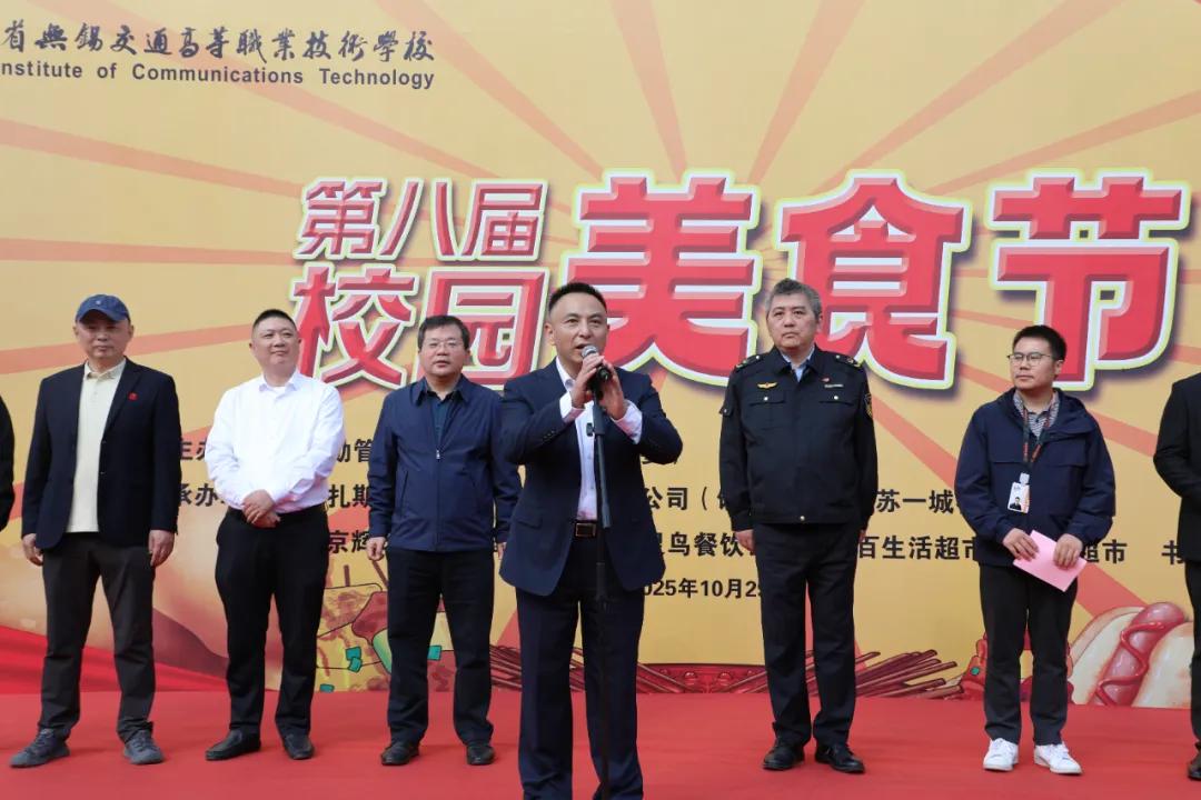 本次美食節(jié)以“食力全開、運動嗨翻”為主題,恰逢美食節(jié)與校運動會同時開展,旨在通過展示美食文化、運動會上運動健兒風采,豐富校園文化生活。學校黨委書記李進,副校長范次猛出席開幕式。無錫市濱湖區(qū)市場監(jiān)督局榮巷分局副局長姚鶴頻,餓了么江蘇區(qū)域經理盧軍,江蘇一城謇餐餐飲管理有限公司總經理包海峰,南京輝玲緣餐飲管理有限公司總監(jiān)鄧義斌,北京百靈鳥餐飲管理有限公司副總經理馬建棟,集百生活超市區(qū)域經理鹿存飛,浙江虹盛食品有限公司區(qū)域經理劉炯瑋參加了開幕式。