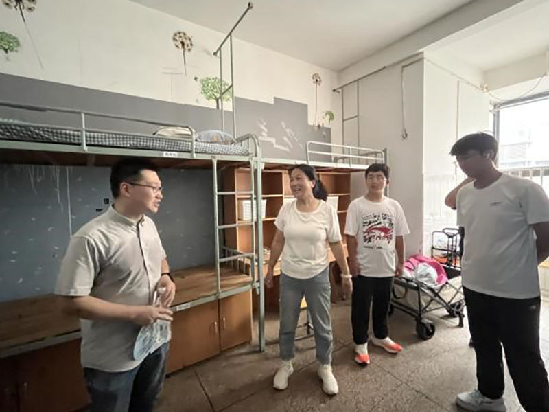 上午9時(shí),學(xué)院領(lǐng)導(dǎo)前往新生宿舍樓,看望剛安頓好的新生,了解他們的住宿環(huán)境與生活需求。院領(lǐng)導(dǎo)仔細(xì)查看宿舍的床鋪、衣柜、空調(diào)等設(shè)施,詢問(wèn)新生住宿情況、生活用品有無(wú)缺失,并現(xiàn)場(chǎng)回答家長(zhǎng)學(xué)生問(wèn)題。