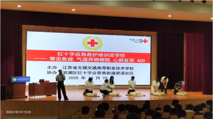 2025年10月15日,汽車(chē)工程學(xué)院在學(xué)校大禮堂舉辦了一場(chǎng)意義非凡的紅十字應(yīng)急救護(hù)培訓(xùn)。學(xué)院聯(lián)合濱湖區(qū)紅十字會(huì)榮巷街道梁溪社區(qū)特別邀請(qǐng)無(wú)錫市紅十字會(huì)四星救護(hù)培訓(xùn)師蔣小燕老師,為學(xué)生們帶來(lái)實(shí)用急救知識(shí)與技能。